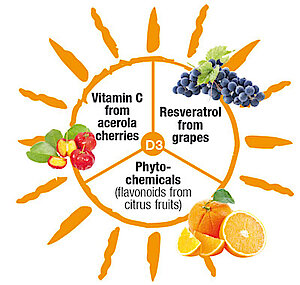 Citrus flavonoids are some of the phytochemicals which protect plants from external environmental impacts. They also serve as natural dyes (e.g. anthocyanins) and also play a key role in human nutrition. The citrus flavonoids contained in Vitamin D3 4000 I.U. plus are mainly obtained from oranges and usefully supplement the vitamin D product.