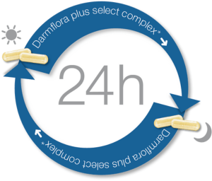 Darmflora plus select complex* ist ein Präparat mit 22 spezialisierten, lebenden Milchsäurebakterien-Kulturen in der genau abgestimmten Dosierung von 160 Milliarden pro Tag. Die Kulturen von Darmflora plus select complex* sind resistent gegen Magen- und Gallensäure, wodurch sie den Darm unbeschadet erreichen können.